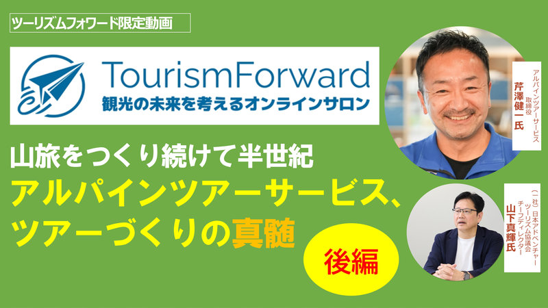 観光に関するトレンドや話題のテーマについて、(一社)日本アドベンチャーツーリズム協議会(JATO)山下真輝チーフディレクターがその分野の第一人者を招いてお話を聞く限定動画を定期的に配信します。LIVE配信時には会員交えたディスカッションも実施します(予定)。観光業に携わる方や観光業を目指したい方、他業界の方も参加可能。