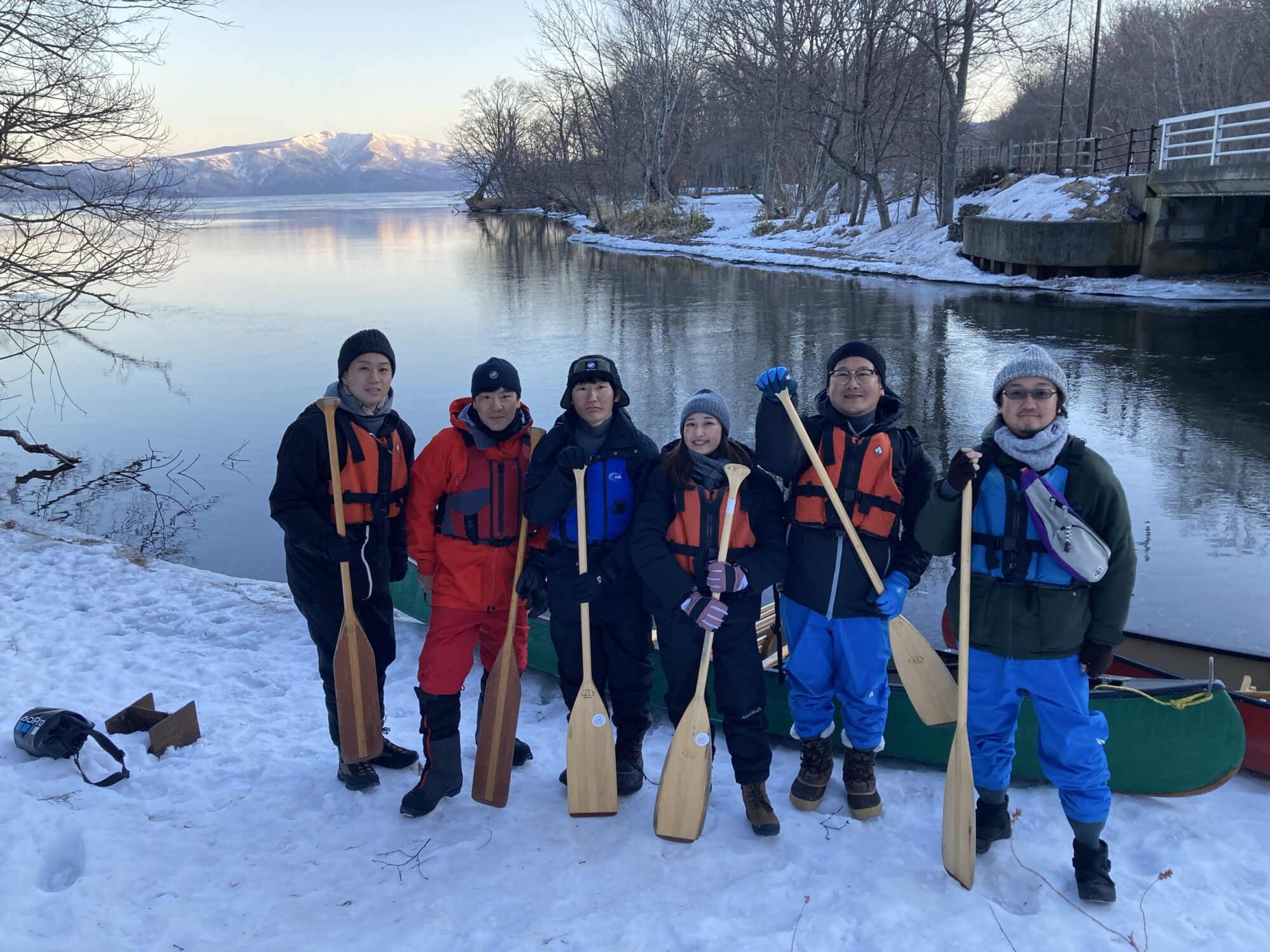 早朝屈斜路湖からカヌー体験へ出発