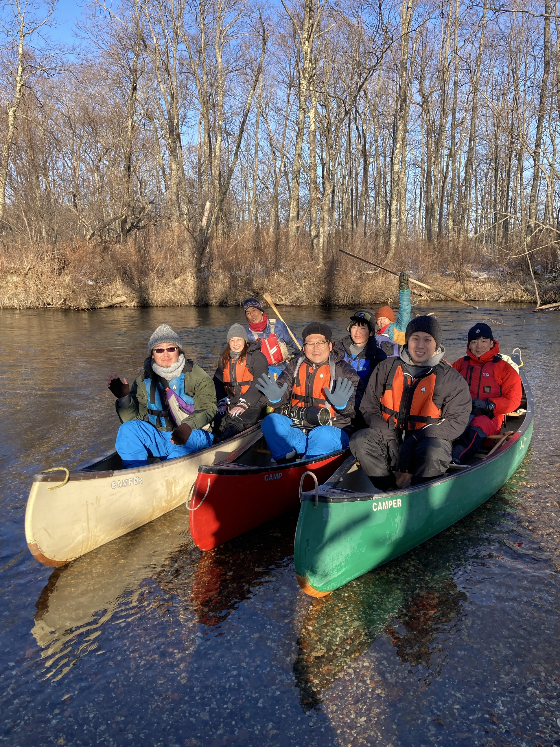 カヌー上でコーヒータイムの後記念写真