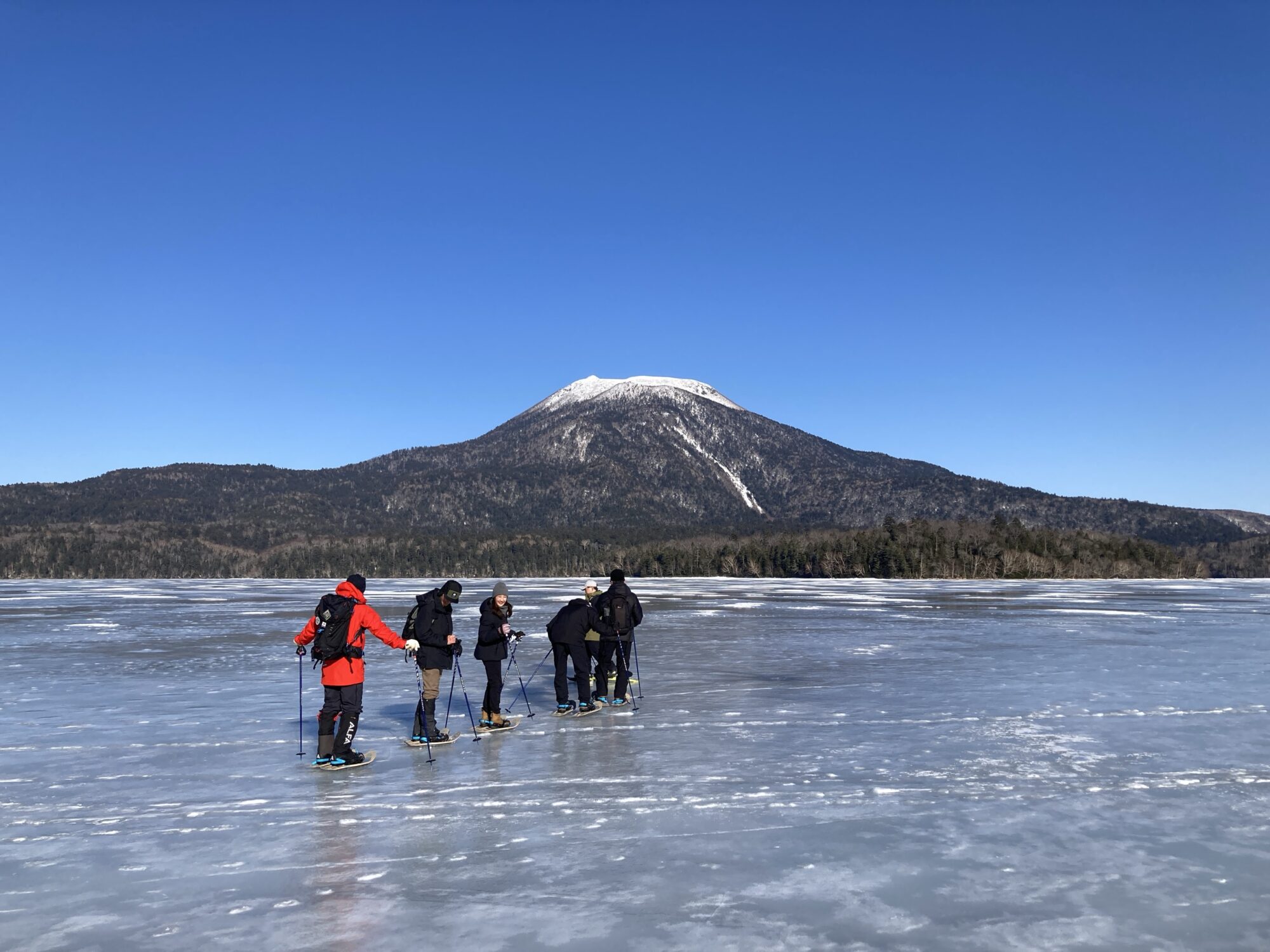 阿寒湖の上をスノーシューで渡る稀有な体験